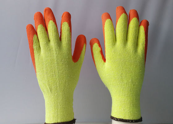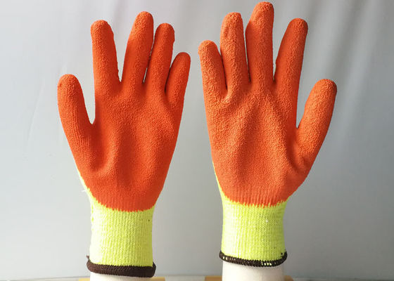 Orange Crinkled Latex Gloves with 10 Gauge Yellow Cotton/Polyester Knitted Seamless Liner For Construction